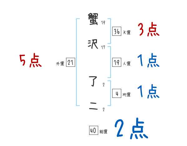 蟹沢了二さんの画数の鑑定結果
