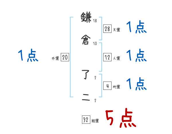 鎌倉了二さんの画数の鑑定結果