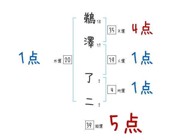鵜澤了二さんの画数の鑑定結果