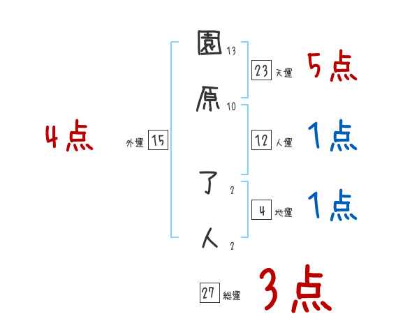 園原了人さんの画数の鑑定結果