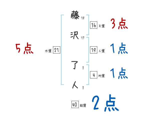 藤沢了人さんの画数の鑑定結果