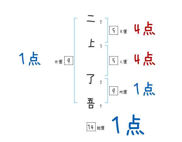 二上了吾さんの画数の鑑定結果