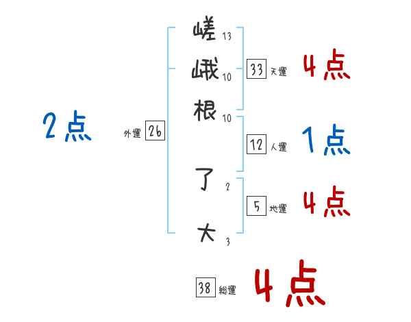 総運![]() | 嵯峨根了大さんの総運は38画の4つ星!温厚な性格で技術的な才能を発揮する。職人的な仕事に向いている。 あなたの人生を表す1番重要な運勢です。生涯を通じて影響する総合運となり、主に50歳以降の晩年期に影響を及ぼします。 |
