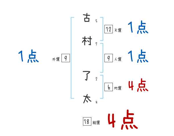 古村了太さんの画数の鑑定結果