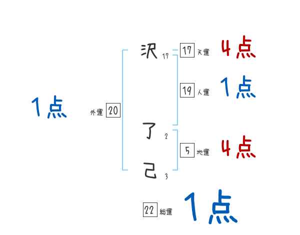 総運![]() | 沢了己さんの総運は22画の1つ星!努力することが苦手ないっぽう手先が器用。芸術性にも優れる。 あなたの人生を表す1番重要な運勢です。生涯を通じて影響する総合運となり、主に50歳以降の晩年期に影響を及ぼします。 |