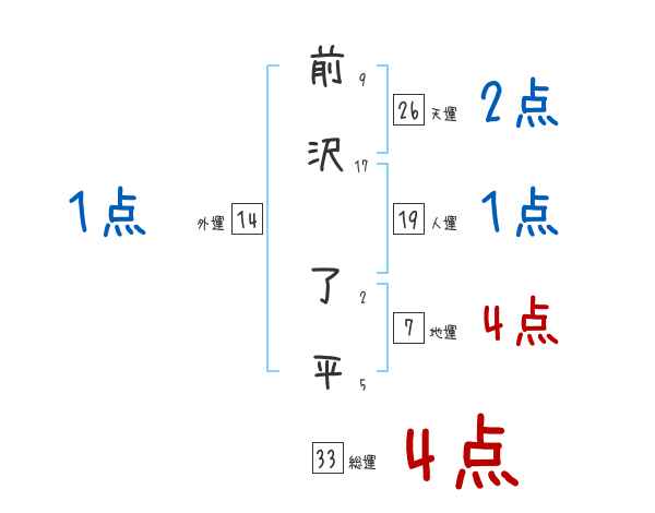 前沢了平さんの画数の鑑定結果