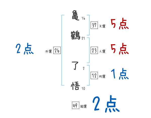 亀鶴了悟さんの画数の鑑定結果