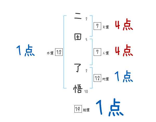二田了悟さんの画数の鑑定結果