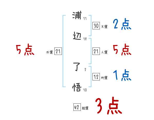 浦辺了悟さんの画数の鑑定結果