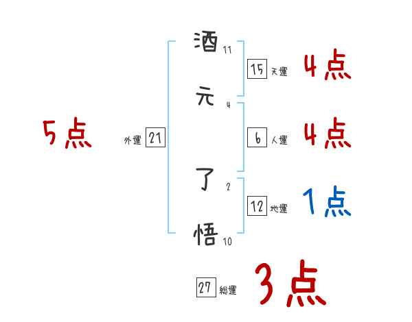 酒元了悟さんの画数の鑑定結果