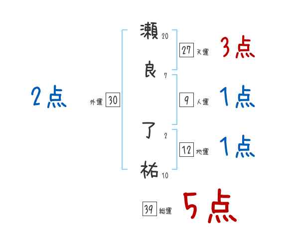 瀬良了祐さんの画数の鑑定結果