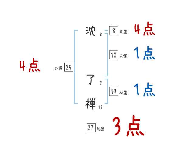 沈了禅さんの画数の鑑定結果