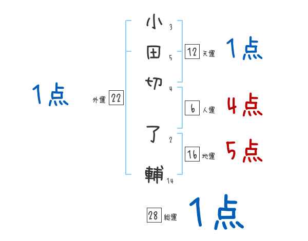 外運![]() | 小田切了輔さんの外運は22画の1つ星!努力することが苦手ないっぽう手先が器用。芸術性にも優れる。 生活面を象徴する運勢です。外部から受ける影響力を表し、結婚運、家庭運や職場、環境への順応性を表します。 |