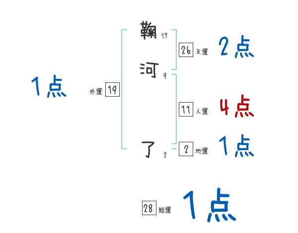 外運![]() | 鞠河了さんの外運は19画の1つ星!優れた才能を持ちますが、協調性が足りないことも。周りの人と協力する事を意識しましょう。 生活面を象徴する運勢です。外部から受ける影響力を表し、結婚運、家庭運や職場、環境への順応性を表します。 |