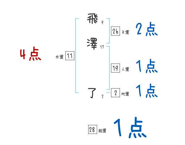 天運![]() | 飛澤了さんの天運は26画の2つ星!波瀾万丈かも。信頼できる人を大事にしましょう。 家系が持つ宿命的な運勢を表します。祖先から受け継いだ苗字ですので自分の力が及びません。家柄を象徴します。 |