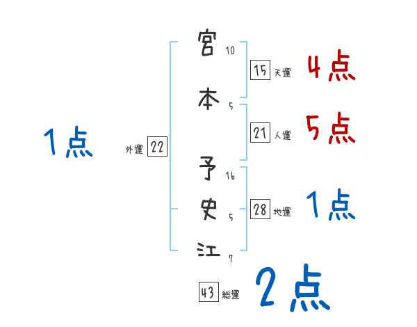 人運![]() | 宮本予史江さんの人運は21画の5つ星!統率力がある。独立し成功する。名誉を手に入れる。 性格や才能などを表す2番目に重要な運勢です。人間関係や協調性、社会的な成功に影響します。主に20歳から50歳ぐらいまでの中年期の運勢を表します。 |