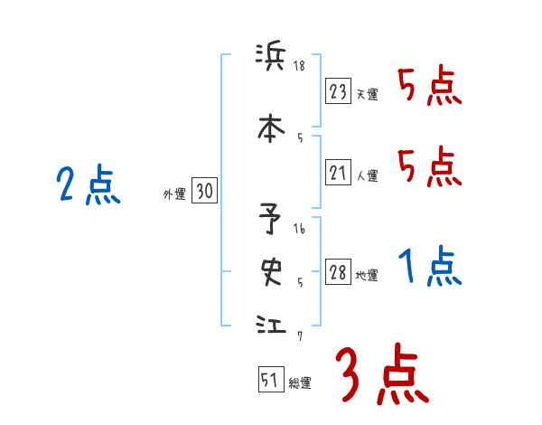 人運![]() | 浜本予史江さんの人運は21画の5つ星!統率力がある。独立し成功する。名誉を手に入れる。 性格や才能などを表す2番目に重要な運勢です。人間関係や協調性、社会的な成功に影響します。主に20歳から50歳ぐらいまでの中年期の運勢を表します。 |