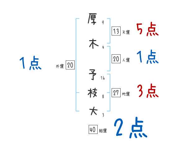 厚木予枝大さんの画数の鑑定結果
