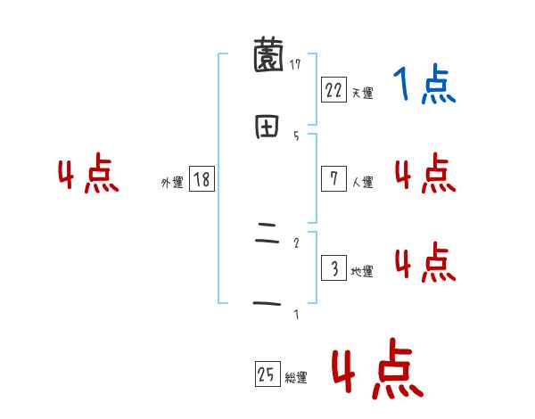 薗田二一さんの画数の鑑定結果