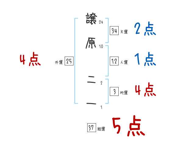 譲原二一さんの画数の鑑定結果