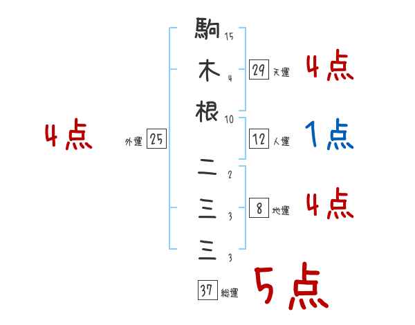 駒木根二三三さんの画数の鑑定結果