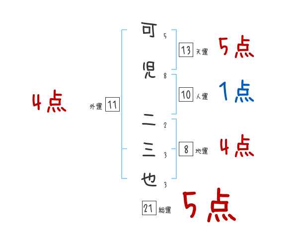 外運![]() | 可児二三也さんの外運は11画の4つ星!着実に富や地位を得る幸運な人生。 生活面を象徴する運勢です。外部から受ける影響力を表し、結婚運、家庭運や職場、環境への順応性を表します。 |