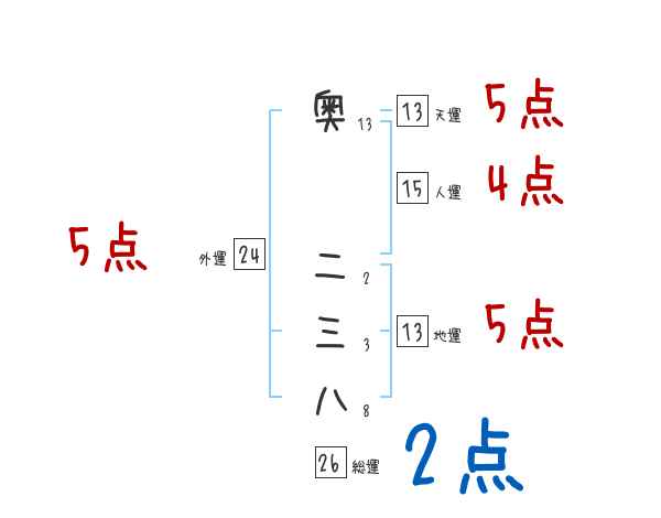 奥二三八さんの画数の鑑定結果