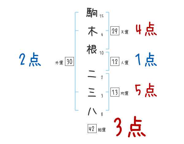 総運![]() | 駒木根二三八さんの総運は42画の3つ星!病気に注意。多芸であるが消極的でおとなしい。 あなたの人生を表す1番重要な運勢です。生涯を通じて影響する総合運となり、主に50歳以降の晩年期に影響を及ぼします。 |