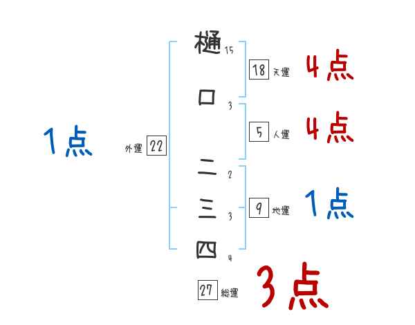 天運![]() | 樋口二三四さんの天運は18画の4つ星!情熱的で剛気。忍耐力があり信頼される。 家系が持つ宿命的な運勢を表します。祖先から受け継いだ苗字ですので自分の力が及びません。家柄を象徴します。 |