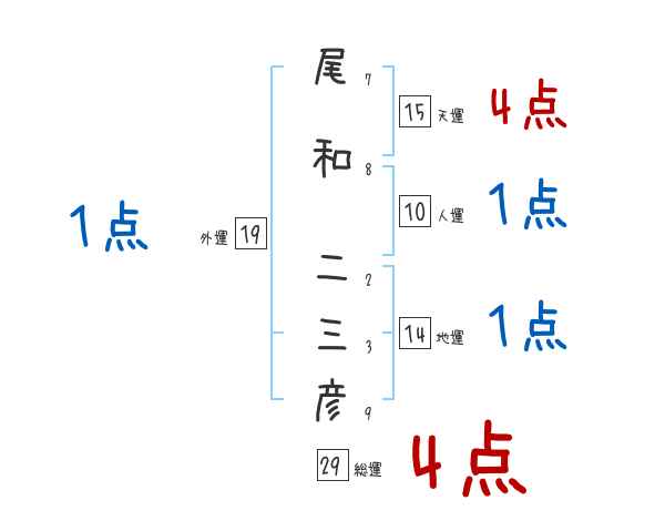 総運![]() | 尾和二三彦さんの総運は29画の4つ星!完全主義で才能がある。厳格な心の持ち主。 あなたの人生を表す1番重要な運勢です。生涯を通じて影響する総合運となり、主に50歳以降の晩年期に影響を及ぼします。 |