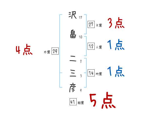 沢畠二三彦さんの画数の鑑定結果