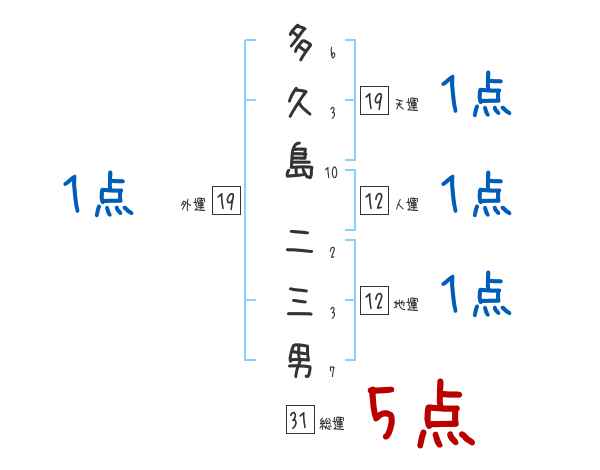 多久島二三男さんの画数の鑑定結果