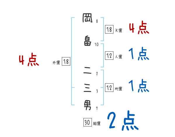 岡畠二三男さんの画数の鑑定結果