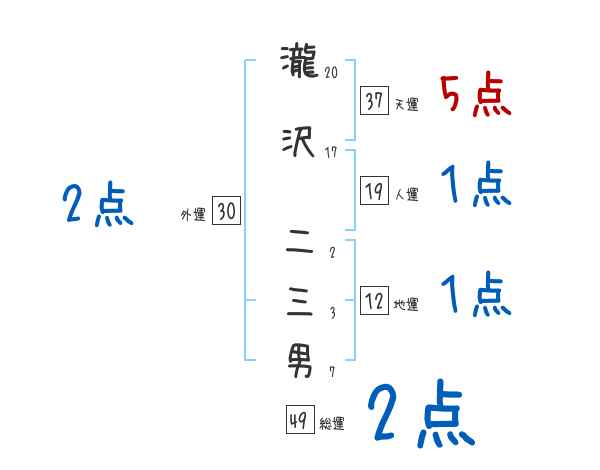 瀧沢二三男さんの画数の鑑定結果