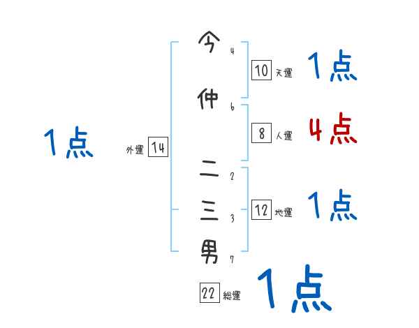 今仲二三男さんの画数の鑑定結果