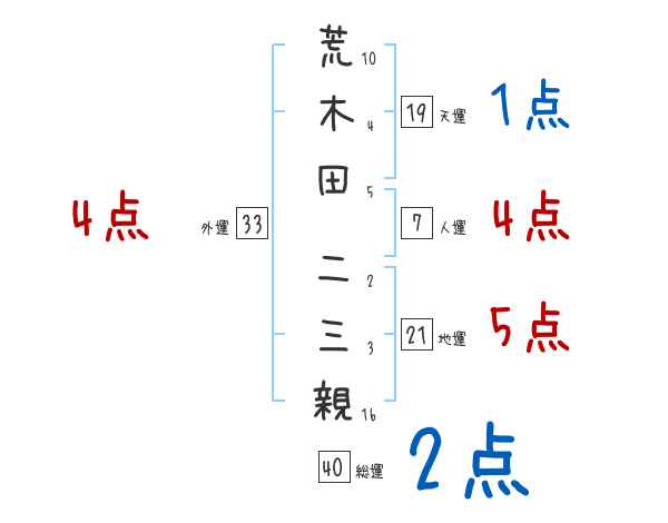 荒木田二三親さんの画数の鑑定結果