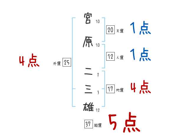総運![]() | 宮原二三雄さんの総運は37画の5つ星!努力家で順応性に優れる。現実的な考え方ができ忠実に物事をこなす。 あなたの人生を表す1番重要な運勢です。生涯を通じて影響する総合運となり、主に50歳以降の晩年期に影響を及ぼします。 |
