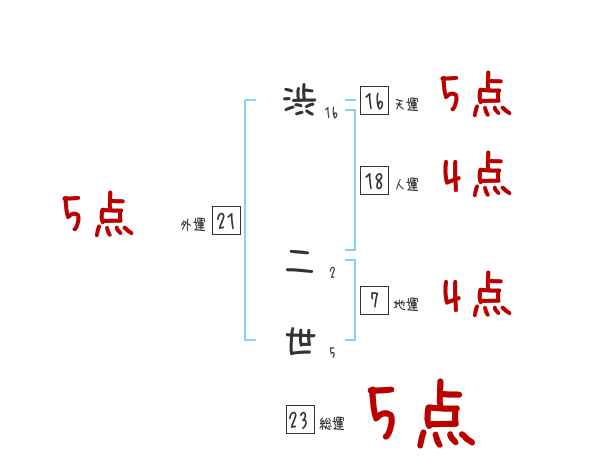 渋二世さんの画数の鑑定結果