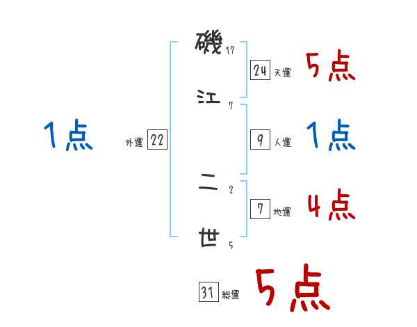 磯江二世さんの画数の鑑定結果