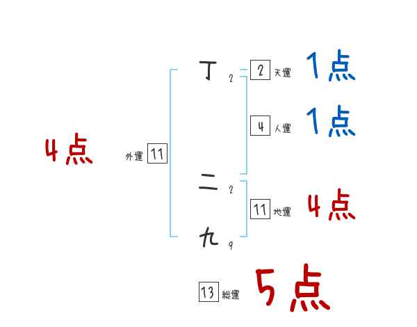 総運![]() | 丁二九さんの総運は13画の5つ星!才能に恵まれ人気がある。名声を手に入れる。円満な人生。 あなたの人生を表す1番重要な運勢です。生涯を通じて影響する総合運となり、主に50歳以降の晩年期に影響を及ぼします。 |