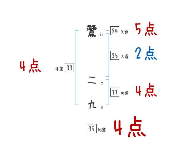 鷺二九さんの画数の鑑定結果