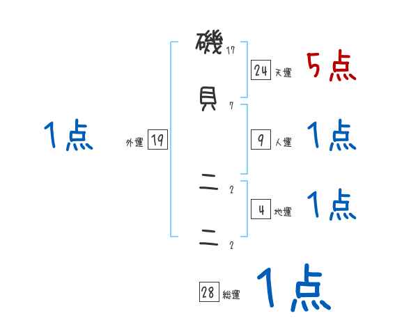 磯貝二二さんの画数の鑑定結果