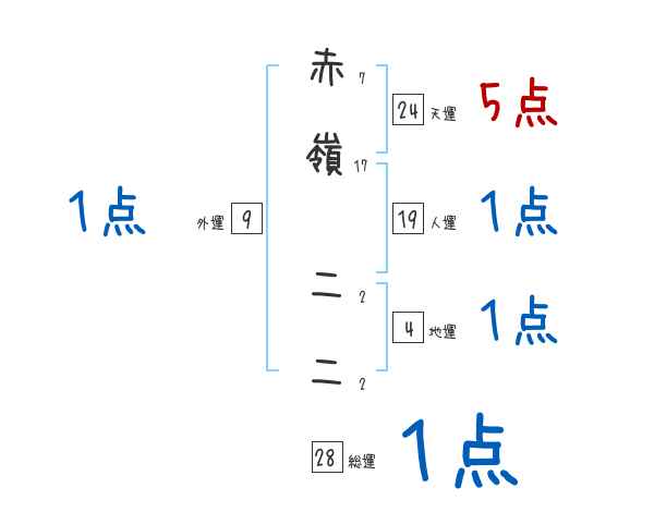 赤嶺二二さんの画数の鑑定結果