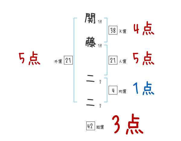 関藤二二さんの画数の鑑定結果