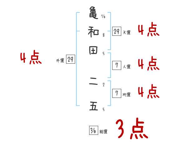 亀和田二五さんの画数の鑑定結果