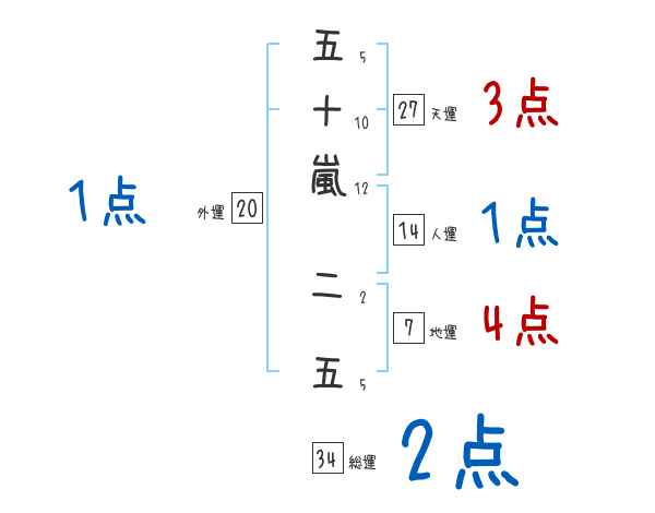 総運![]() | 五十嵐二五さんの総運は34画の2つ星!独創性に優れるが、自尊心が強く災難に注意しましょう。 あなたの人生を表す1番重要な運勢です。生涯を通じて影響する総合運となり、主に50歳以降の晩年期に影響を及ぼします。 |