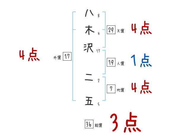 八木沢二五さんの画数の鑑定結果
