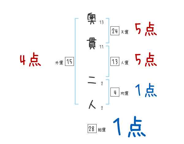 奥貫二人さんの画数の鑑定結果
