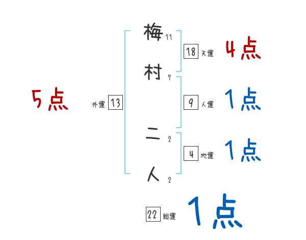 梅村二人さんの画数の鑑定結果