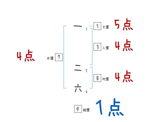 人運![]() | 一二六さんの人運は3画の4つ星!活動的で才能に恵まれ、多くの信頼を得る。希望に満ち成長する。 性格や才能などを表す2番目に重要な運勢です。人間関係や協調性、社会的な成功に影響します。主に20歳から50歳ぐらいまでの中年期の運勢を表します。 |